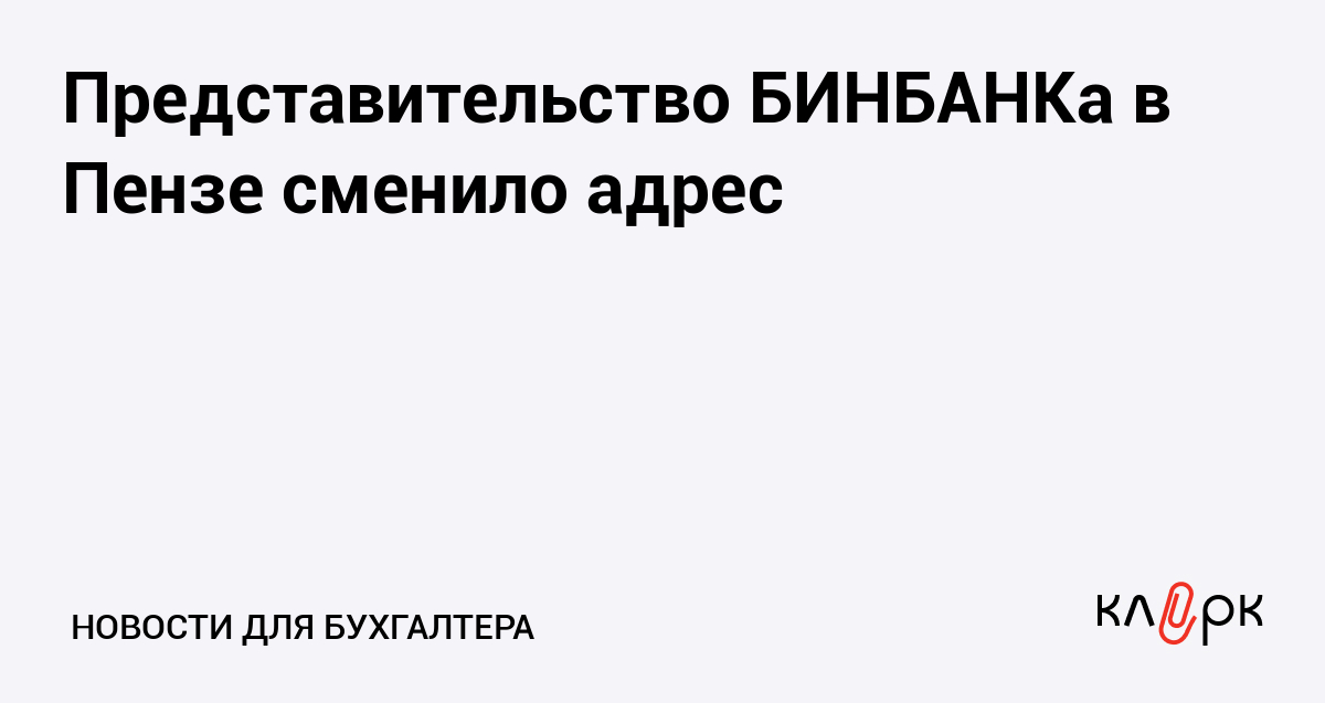 Представительство БИНБАНКа в Пензе сменило адрес