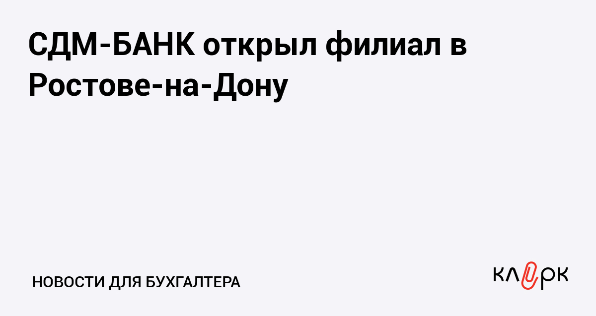 СДМ-БАНК открыл филиал в Ростове-на-Дону. Новый филиал предоставляет полный комплекс современных банковских услуг физическим и юридическим лицам.