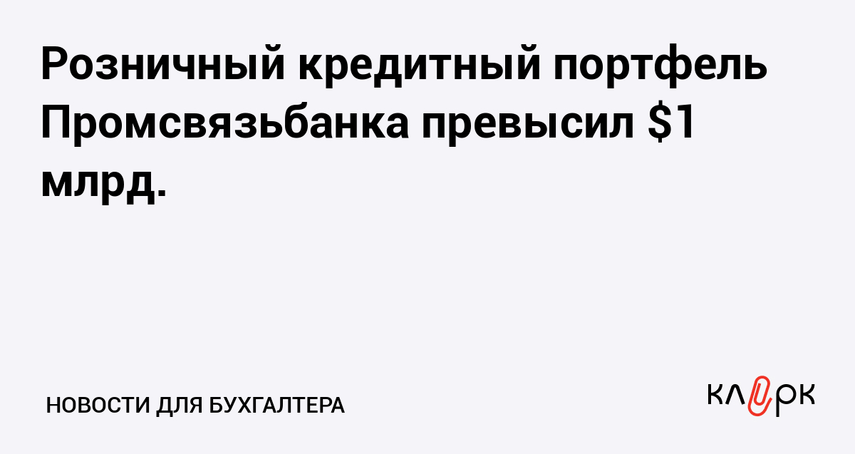 Розничный кредитный портфель Промсвязьбанка превысил $1 млрд.