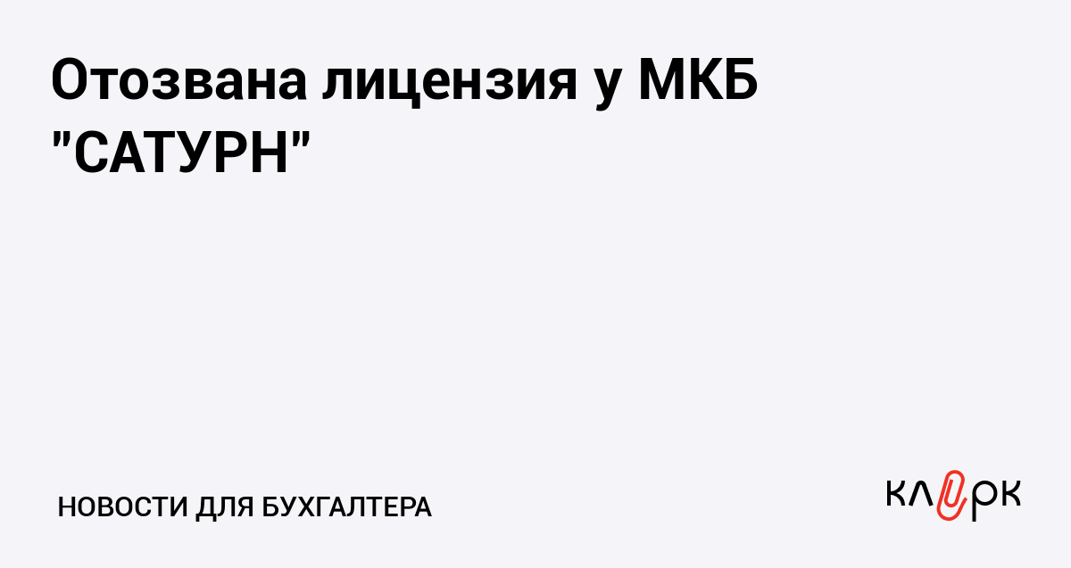 Приказом Банка России от 26.11.2007 № ОД–862 отозвана лицензия на осуществление банковских операций у кредитной организации Московский коммерческий банк "САТУРН" (ООО).