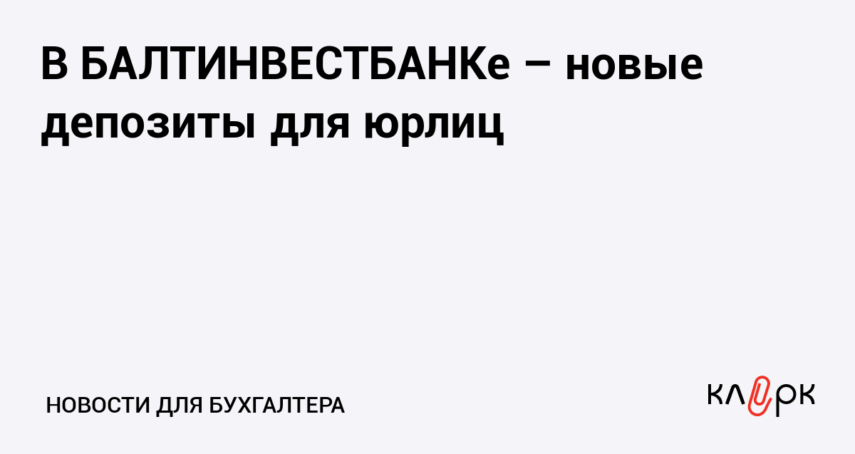 В БАЛТИНВЕСТБАНКе – новые депозиты для юрлиц