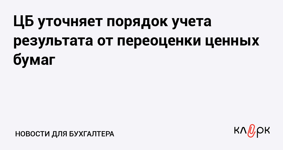 ЦБ уточняет порядок учета результата от переоценки ценных бумаг