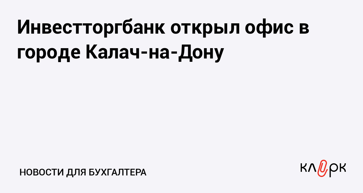 Инвестторгбанк открыл офис в городе Калач-на-Дону