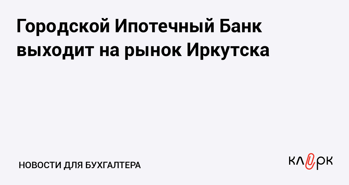 Городской Ипотечный Банк выходит на рынок Иркутска