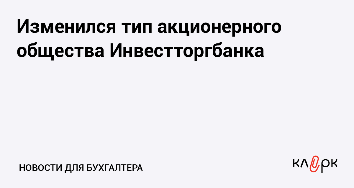 Изменился тип акционерного общества Инвестторгбанка