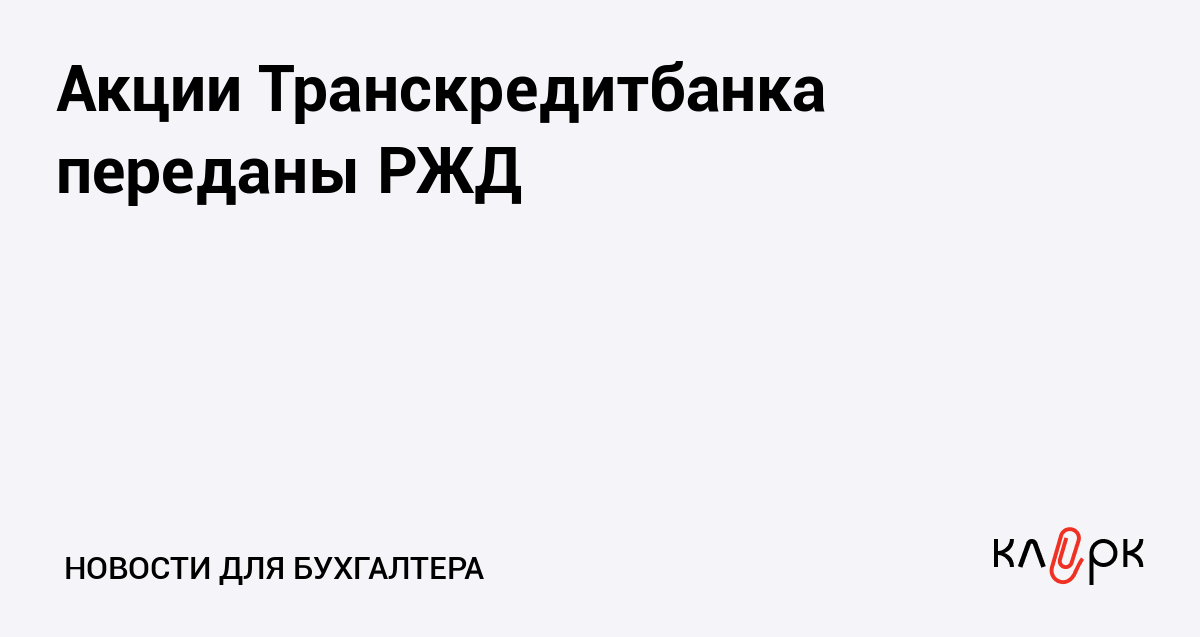 Акции Транскредитбанка переданы РЖД