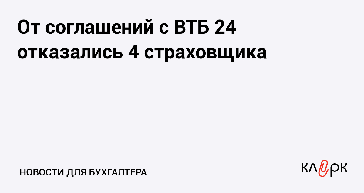 От соглашений с ВТБ 24 отказались 4 страховщика