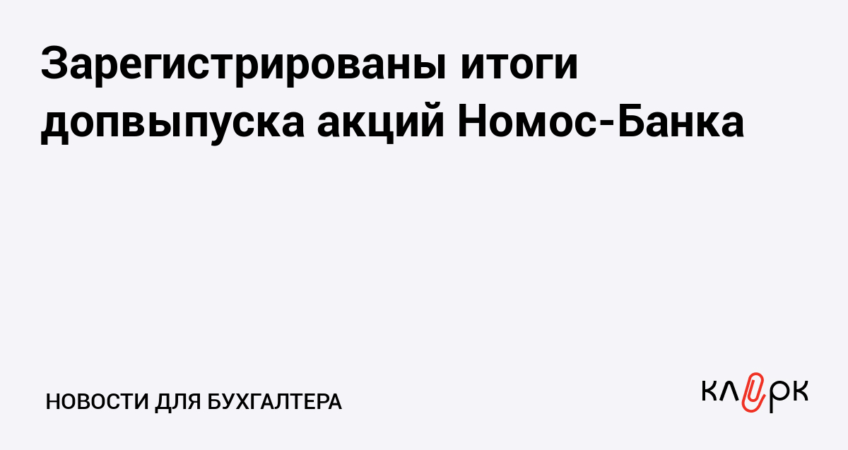 Зарегистрированы итоги допвыпуска акций Номос-Банка