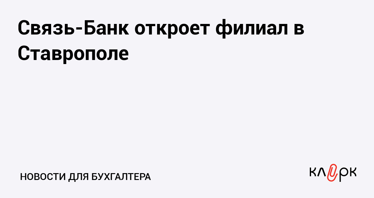 Связь-Банк откроет филиал в Ставрополе