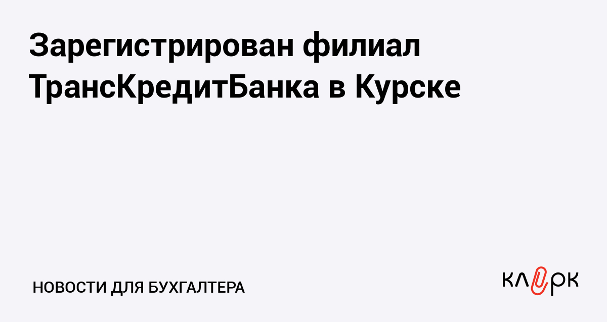Зарегистрирован филиал ТрансКредитБанка в Курске