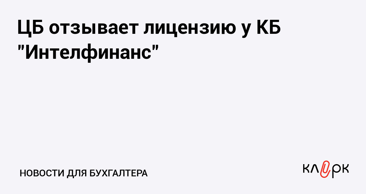 ЦБ отзывает лицензию у КБ "Интелфинанс"