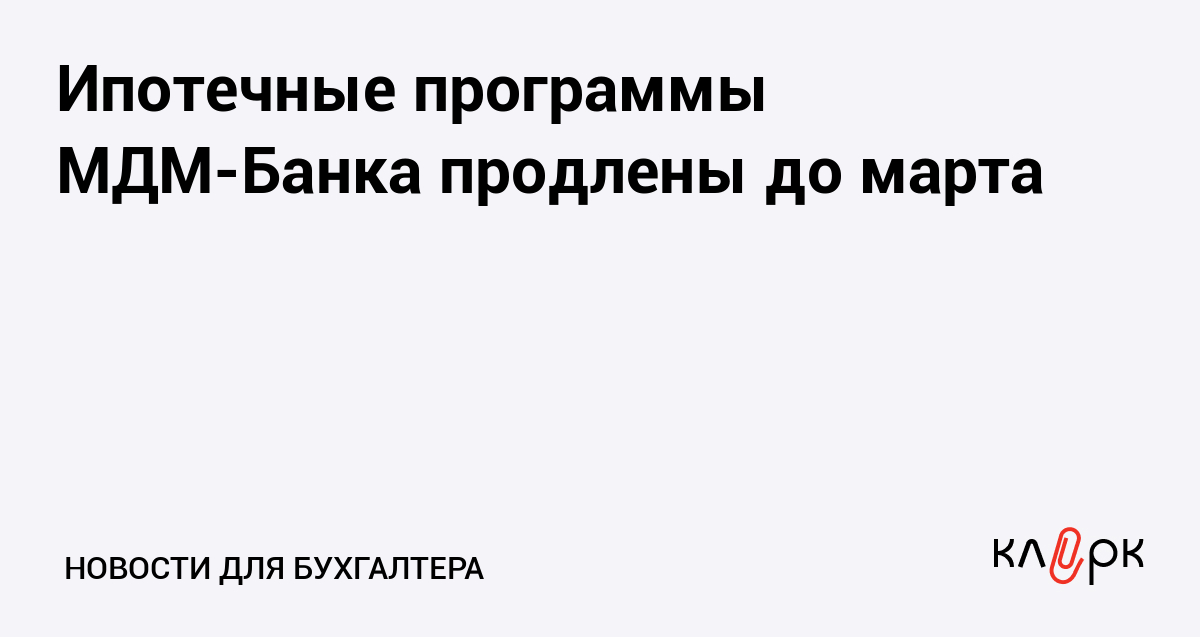 МДМ-Банк продлевает действие новых программ по ипотечному кредитованию без взимания комиссии.