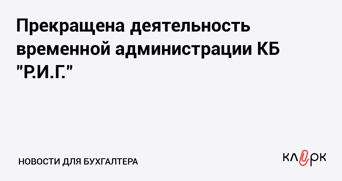 Прекращена деятельность временной администрации КБ "Р.И.Г."