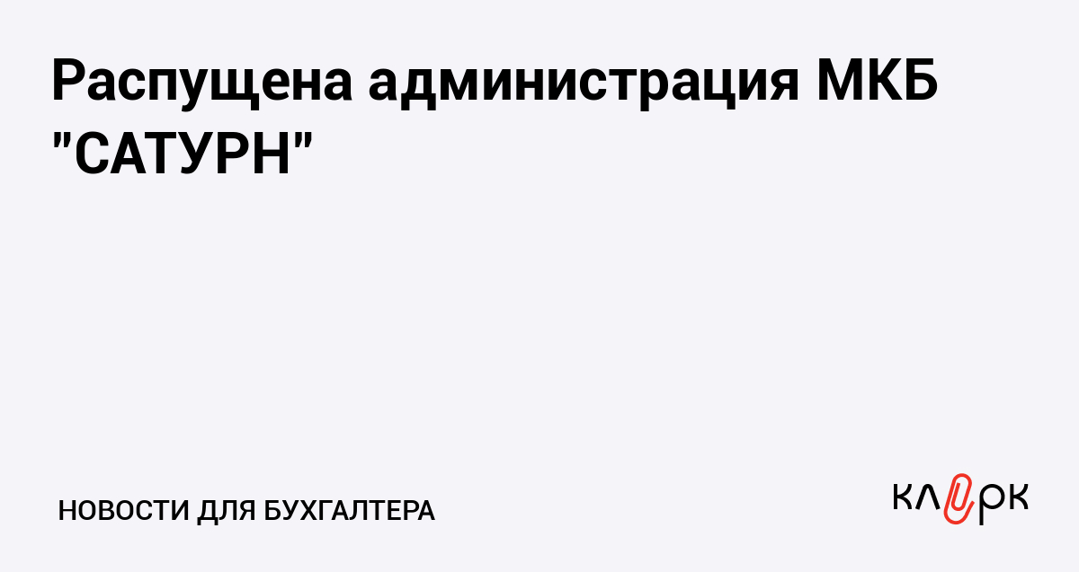 Банк России принял решение (приказ от 05.02.2008 № ОД-76) прекратить с 6 февраля 2008 года деятельность временной администрации по управлению кредитной организацией Московский коммерческий банк "САТУРН", назначенной приказом Банка России от 26.11.2007 № ОД-863 "О назначении временной администрации по управлению кредитной организацией ООО МКБ "САТУРН" (г. Москва) в связи с отзывом лицензии на осуществление банковских операций".