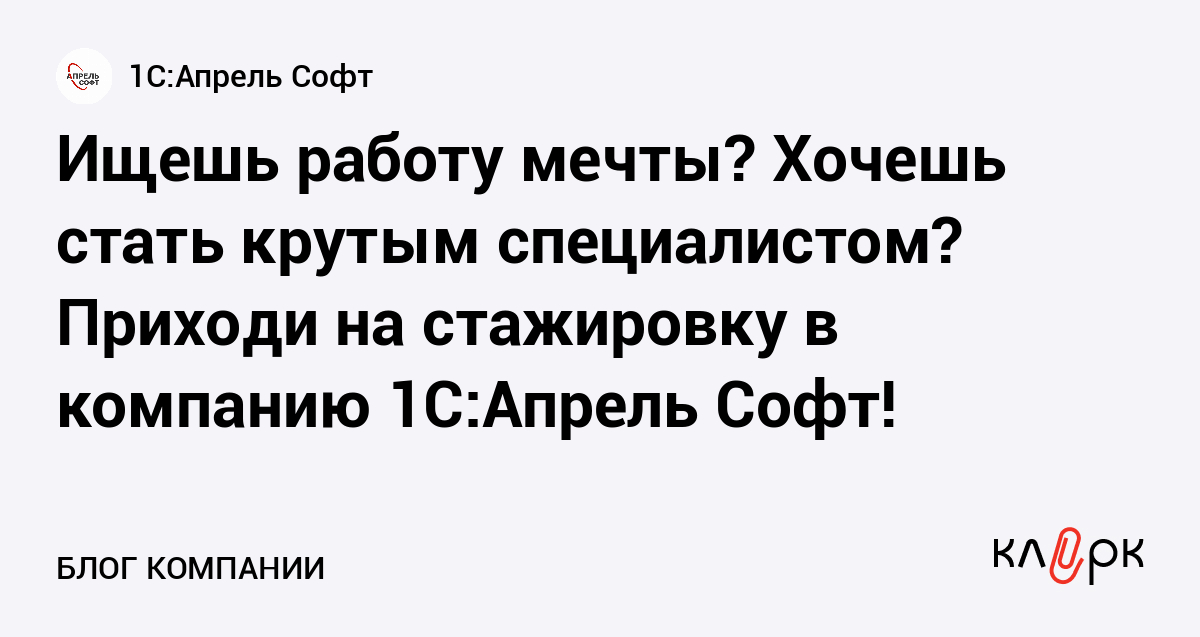 Ищешь работу мечты? Хочешь стать крутым специалистом? Приходи на стажировку в компанию 1С:Апрель Софт!