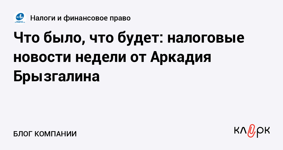 Что было, что будет: налоговые новости недели от Аркадия Брызгалина