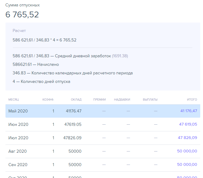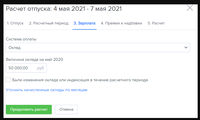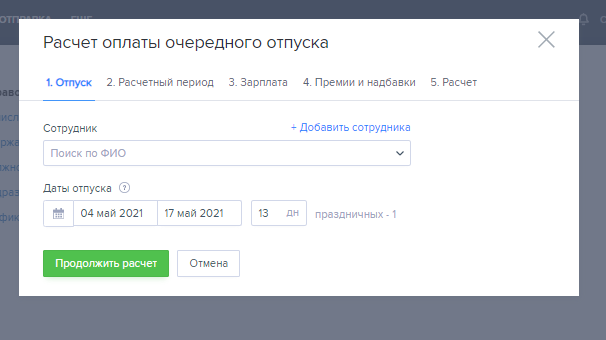 1. Чтобы проверить расчет, введите в калькулятор даты отпуска. Проверьте расчетный период.