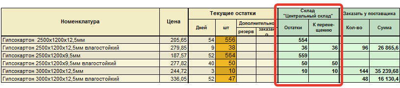 - экономия времени. Не нужно запускать отчет по каждому магазину в отдельности, все перемещения и заказы делаются за один раз.