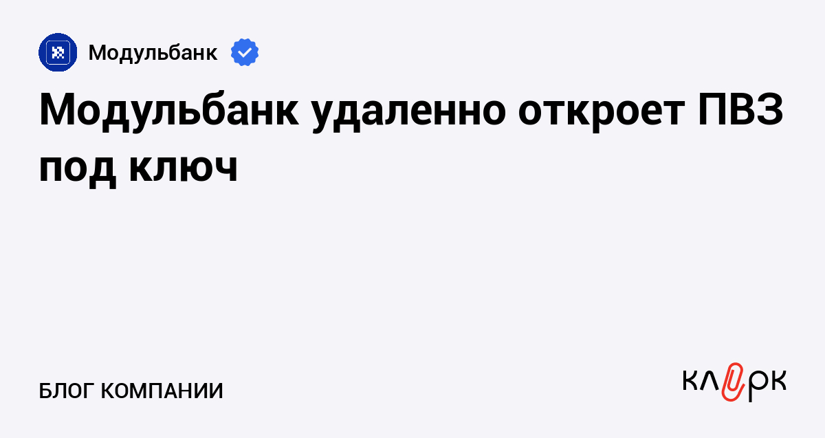 Заказать открытие ПВЗ под ключ можно в личном кабинете Модульбанка или оставить заявку по ссылке: https://modulbank.ru/marketplace/pvz/