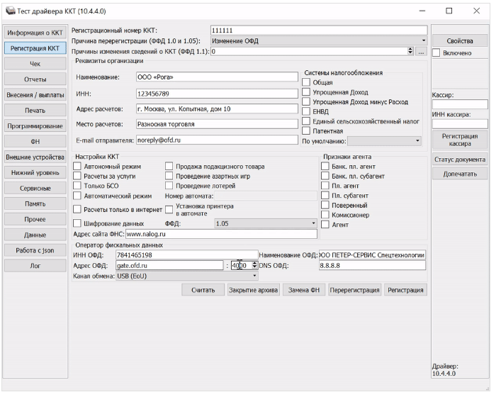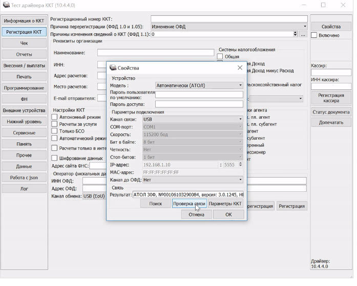 Шаг 2. Фискализация. Сервисная утилита для регистрации ККТ (АТОЛ)