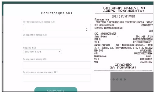 Когда настройка кассы выполнена, нужно вернуться в личный кабинет налоговой, где в разделе «Контрольно-кассовая техника» нажать «Завершить регистрацию». В появившемся окне нужно указать данные из отчета, полученного после фискализации: