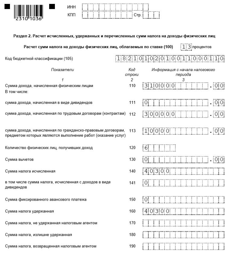 Новый раздел два напоминает раздел один старой формы. В нем обобщенно отражаются суммы начисленного дохода и удержанного налога нарастающим итогом с начала налогового периода. Но есть и различия.