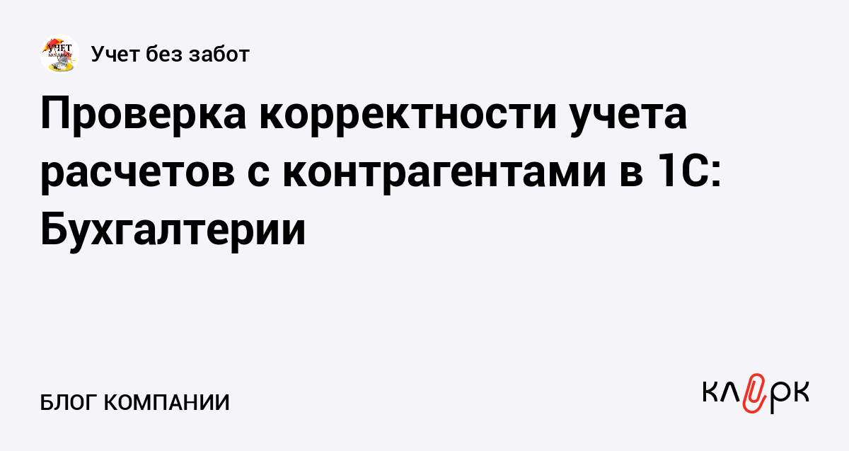 Проверка корректности учета расчетов с контрагентами в 1С: Бухгалтерии