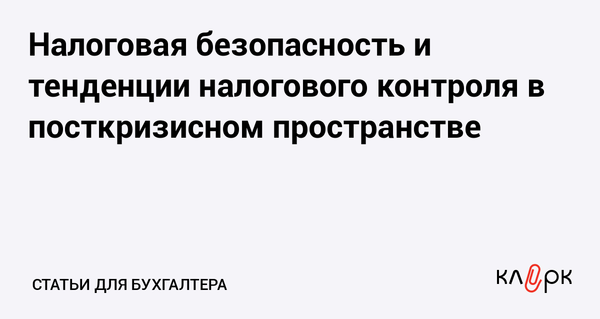 Налоговая безопасность и тенденции налогового контроля в посткризисном пространстве