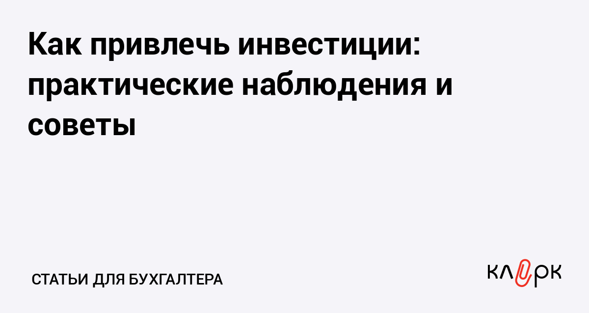 Смещение акцентов подобным образом позволит вам избежать большого числа ошибок. Вы будете смотреть на ситуацию глазами инвестора. Этот навык поможет вам решить многие проблемы. Другие же практические наблюдения и советы по привлечению инвестиций рассмотрены далее.