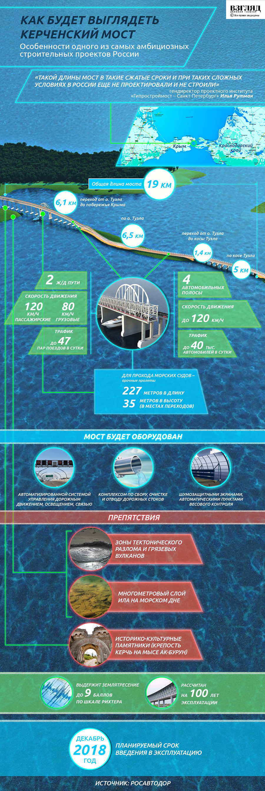 Сами масштабы и сроки строительства уже должны стать уникальными. Это будет самый большой совмещенный мостовой переход в Европе – протяженностью 19 километров. Пропускная способность моста составит до 40 тыс. авто и до 47 поездов в сутки. Скорость движения будет достигать 120 км/ч. А построить мост должны за рекордные три года – до конца 2018-го.