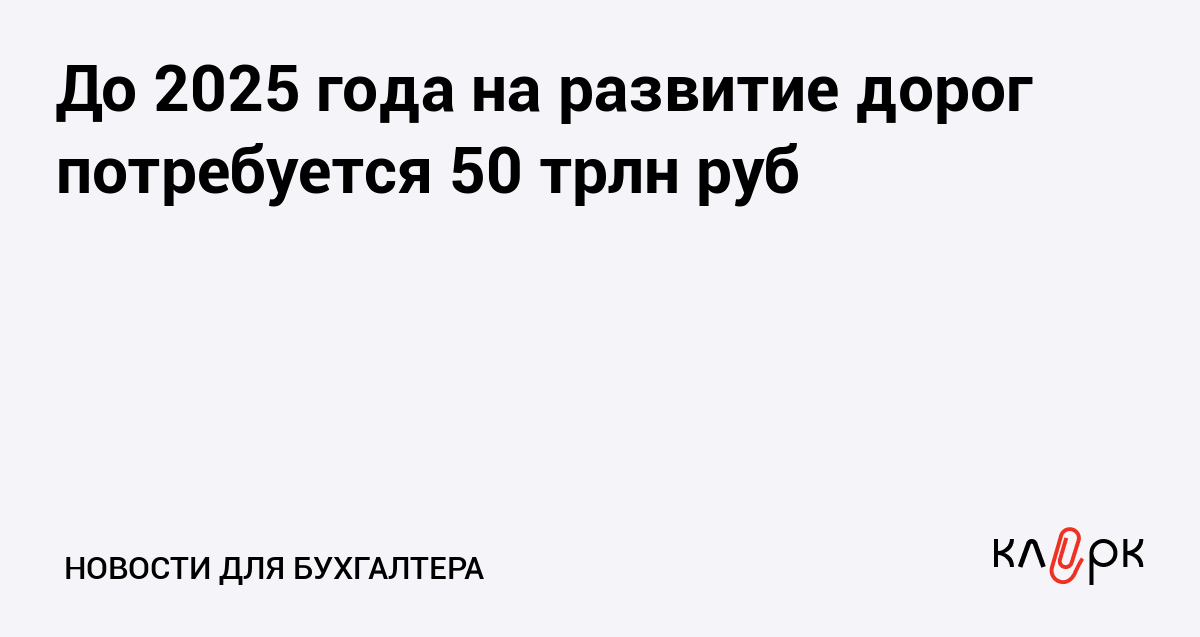 До 2025 года на развитие дорог потребуется 50 трлн руб