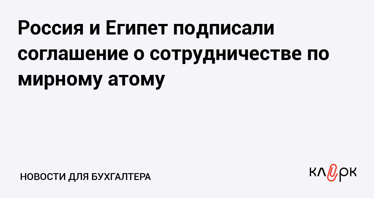 Россия и Египет заключили межправительственное соглашение о сотрудничестве в области мирного использования атомной энергии.