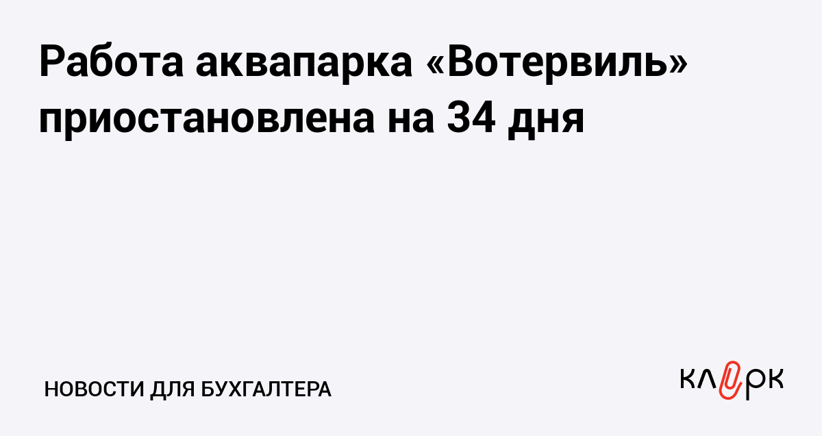 Работа аквапарка «Вотервиль» приостановлена на 34 дня
