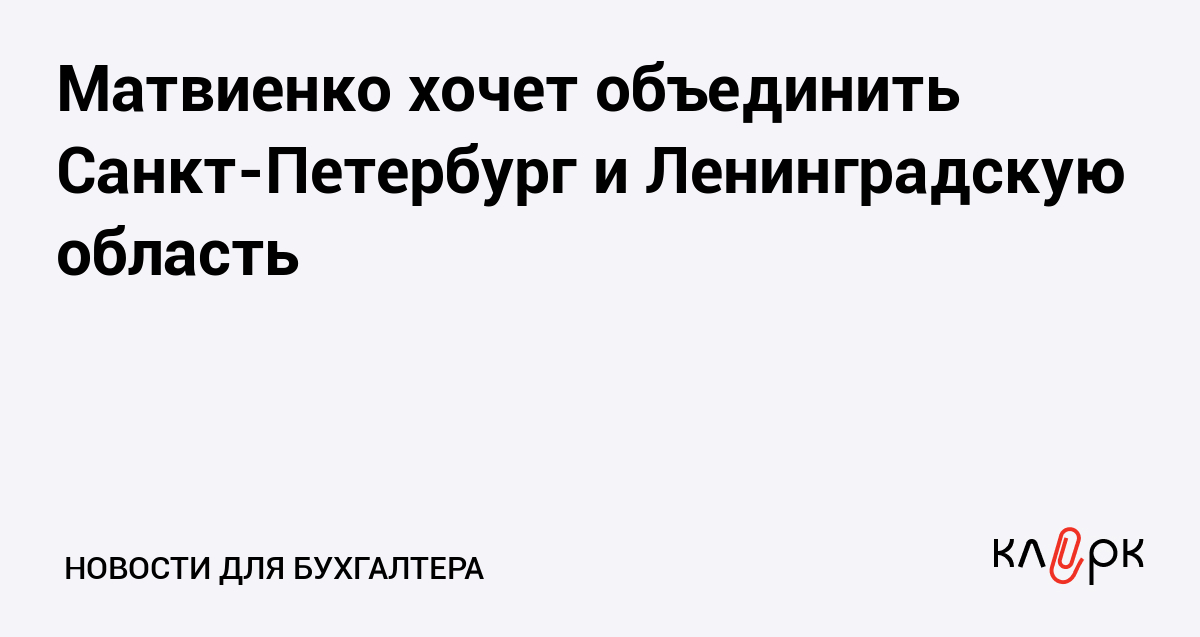 Матвиенко хочет объединить Санкт-Петербург и Ленинградскую область