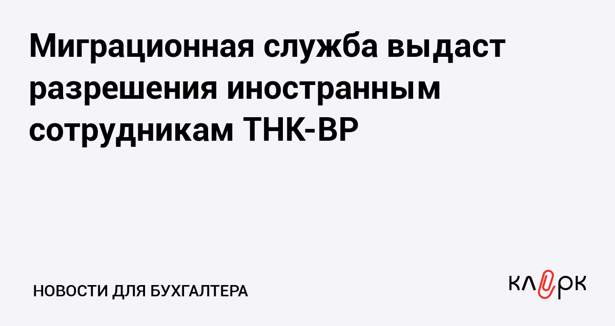 Миграционная служба выдаст разрешения иностранным сотрудникам ТНК-ВР