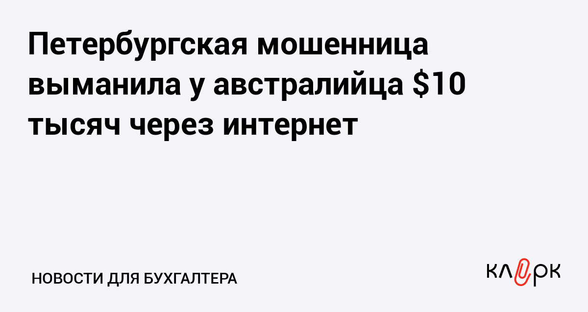 Петербургская мошенница выманила у австралийца $10 тысяч через интернет