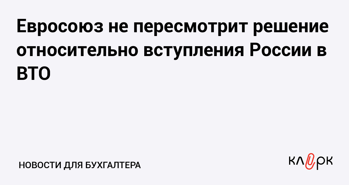 Евросоюз не пересмотрит решение относительно вступления России в ВТО