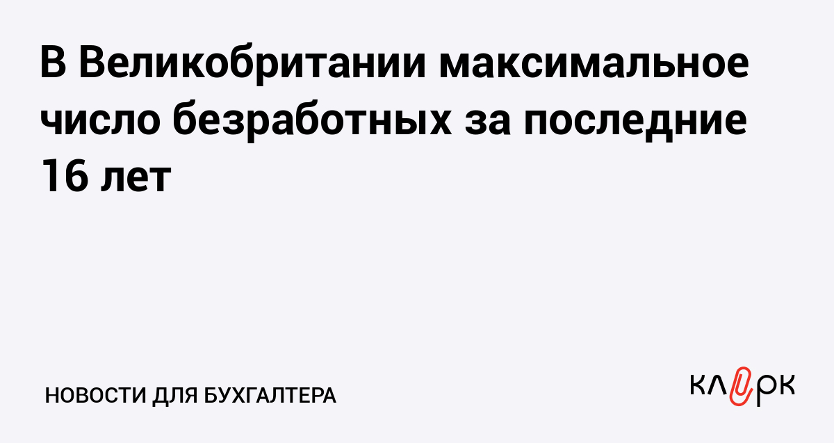 Уровень безработицы в Великобритании достиг максимального уровня за последние 16 лет. За последние 7 месяцев наблюдался постоянный рост числа обратившихся в органы социальной защиты за пособием по безработице, и на днях достигло уровня 1992 года, пишет "Газета.ru".
