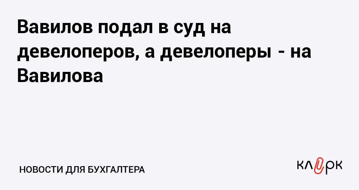 Вавилов подал в суд на девелоперов, а девелоперы - на Вавилова