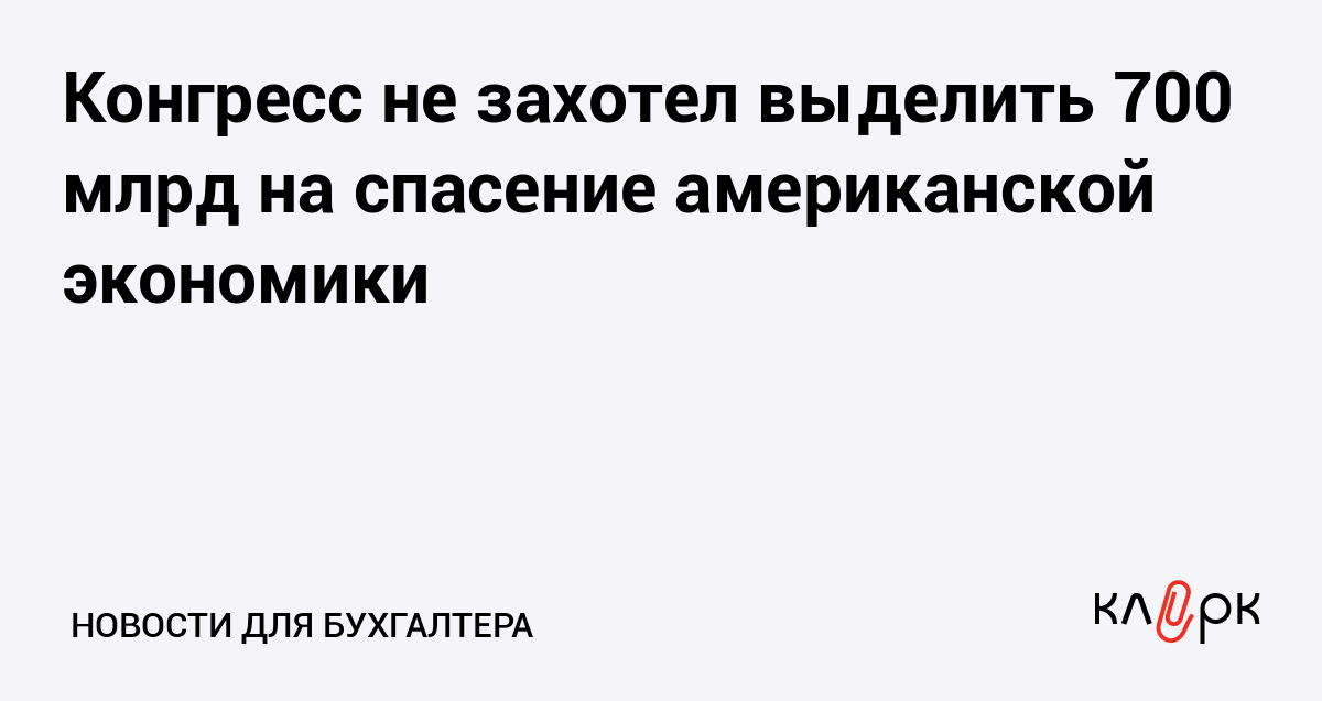 Конгресс США отказался принять предложенный министром финансом и поддержанный президентом план спасения американской экономики. Как ранее сообщал "Клерк.