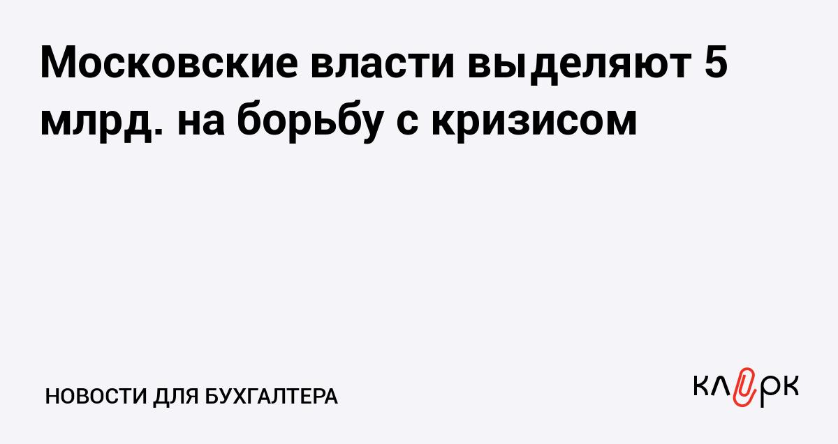 Власти Москвы до конца текущего года выделят 5 млрд руб. на антикризисные мероприятия. Об это заявил на заседании Мосгордумы руководитель Департамента финансов города Юрий Коростелев. Он отметил, что планируется изыскать дополнительные средства в бюджете на 2008 год.