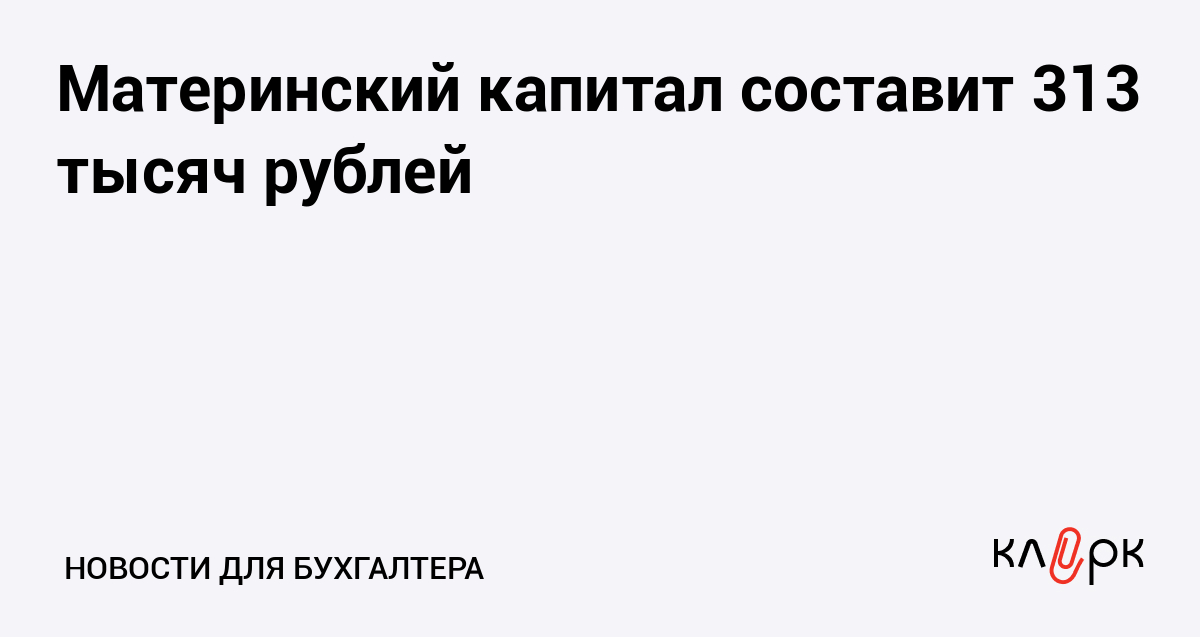 Он сказал, что соответствующие поправки в федеральный бюджет подготовлены и внесены в правительство России, и будут рассмотрены в четверг. После принятия поправок сумма в 313 тыс. рублей будет относиться ко всему периоду 2009 году. Сейчас сумма материнского капитала составляет 299,715 тыс. рублей.