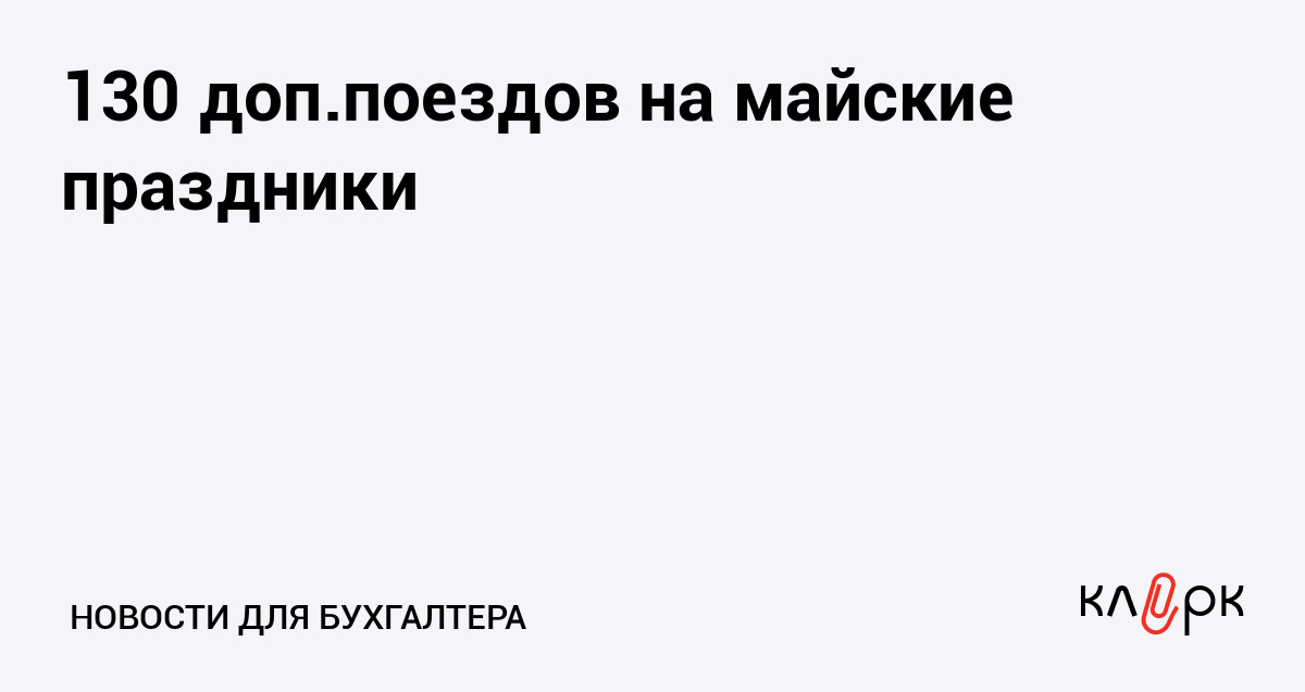 «Для обеспечения повышенного спроса на пассажирские перевозки в период с 23 апреля по 12 мая РЖД уже назначило 130 дополнительных поездов на самые востребованные направления», – говорится в сообщении пресс-службы.