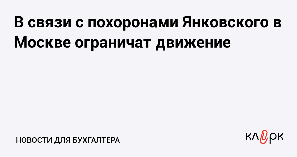 В день похорон народного артиста СССР Олега Янковского движение автомобильного транспорта по нескольким улицам в центре Москвы будет ограничено, передает "Эхо Москвы".