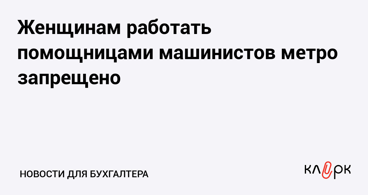В четверг, 21 мая, Верховный суд РФ признал законным запрет занимать должность помощника машиниста метро женщинам, пишет "Российская газета" со ссылкой на слова пресс-секретаря суда Павла Одинцова.