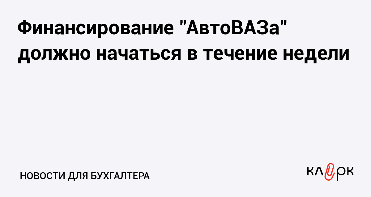 Финансирование "АвтоВАЗа" должно начаться в течение недели