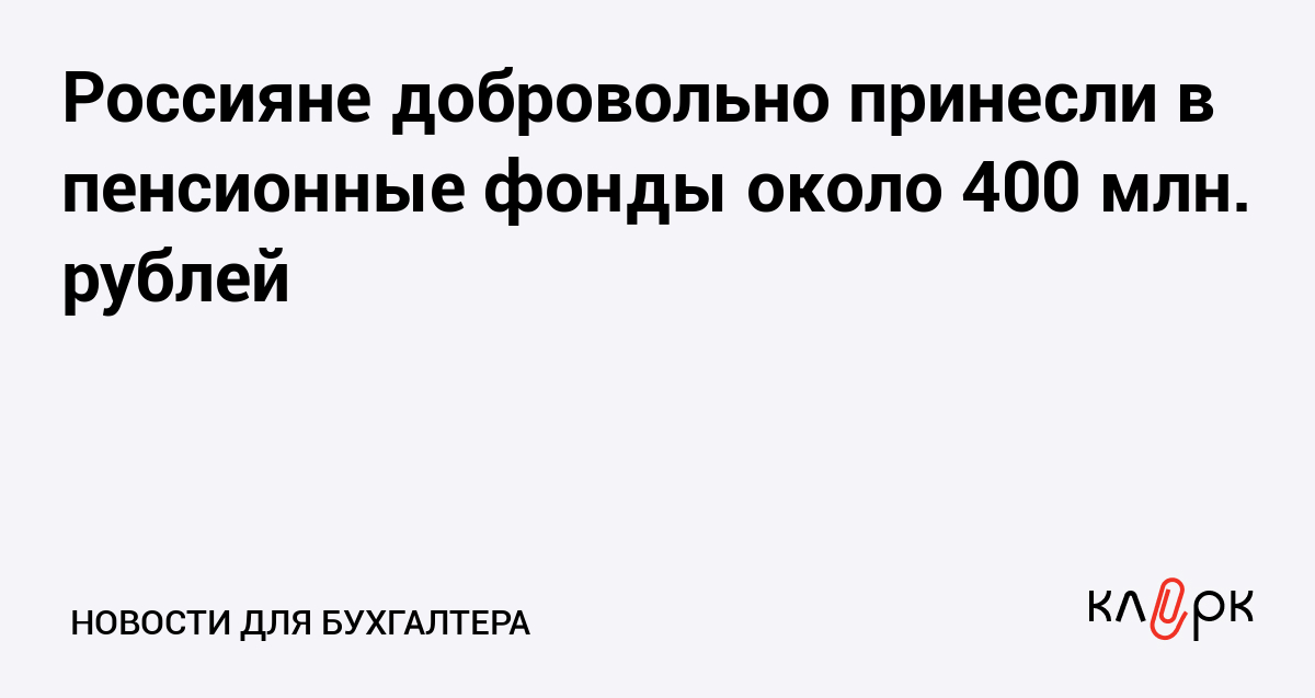 Россияне добровольно принесли в пенсионные фонды около 400 млн. рублей