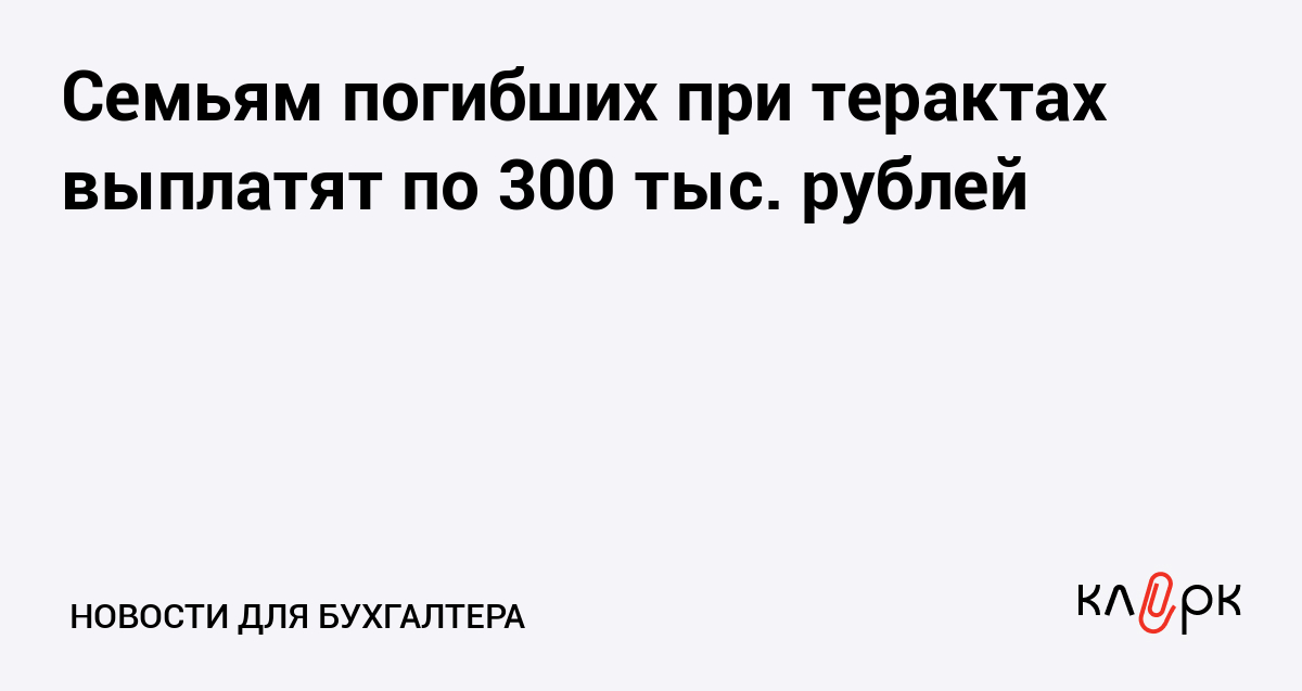 Семьям погибших при терактах выплатят по 300 тыс. рублей