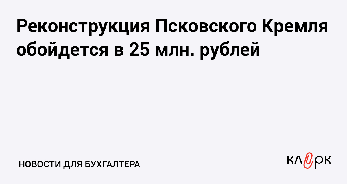 Реконструкция Псковского Кремля обойдется в 25 млн. рублей