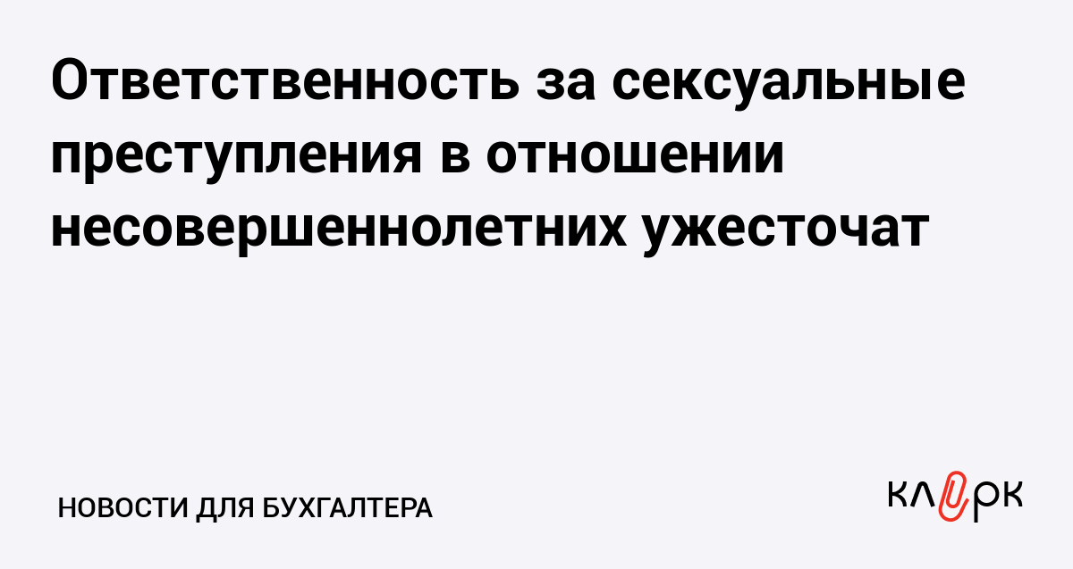 Подготовлен законопроект «О внесении изменений в Уголовный кодекс Российской Федерации в целях усиления ответственности за преступления сексуального характера, совершенные в отношении несовершеннолетних».